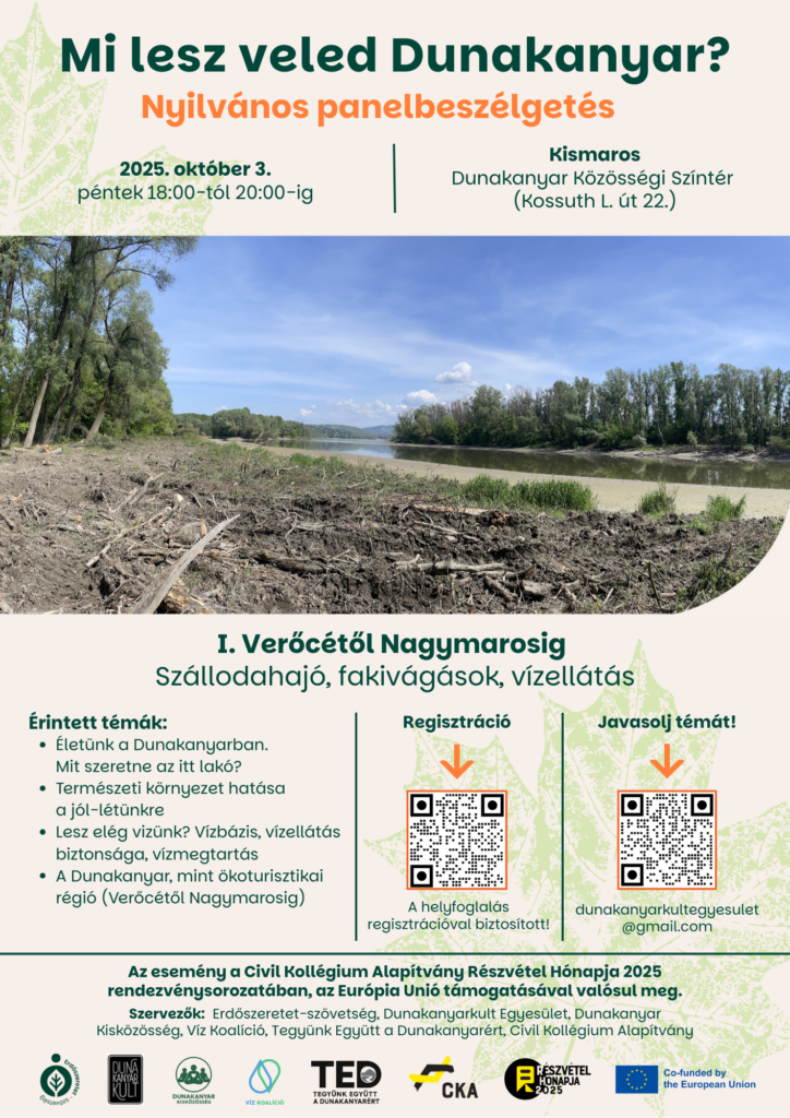 Meghívott előadóink: Lányi András (Dunakör, ELTE) Dedák Dalma (WWF) Moderátor: Himmer Gellért (Dunakanyarkult Egyesület) Nyilvános beszélgetés Nagymaroson a SIGIL galéria